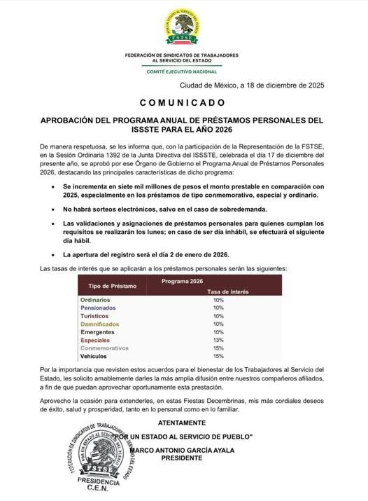 Programa anual de préstamos personales del ISSSTE 2026 Detalles Última actualización: Miércoles, 07, Enero 2026 10:52