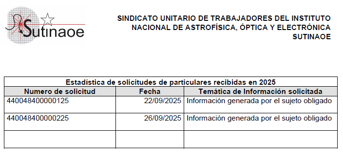 Estadística de Solicitudes particulares recibidas tercer trimestre de 2025