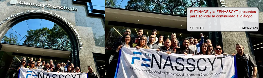 Manuel Escobar y Netzahualcoyotl Carlos del SUTINAOE y Miguel Olmos del SIPCOLEF, asistieron por parte de la FENASSCYT.