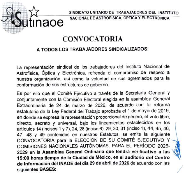 Convocatoria para la sede INAOE